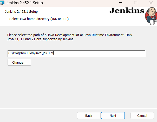 Click on the downloaded 'jenkins.msi' file. Jenkins Setup Wizard opens up as shown below: